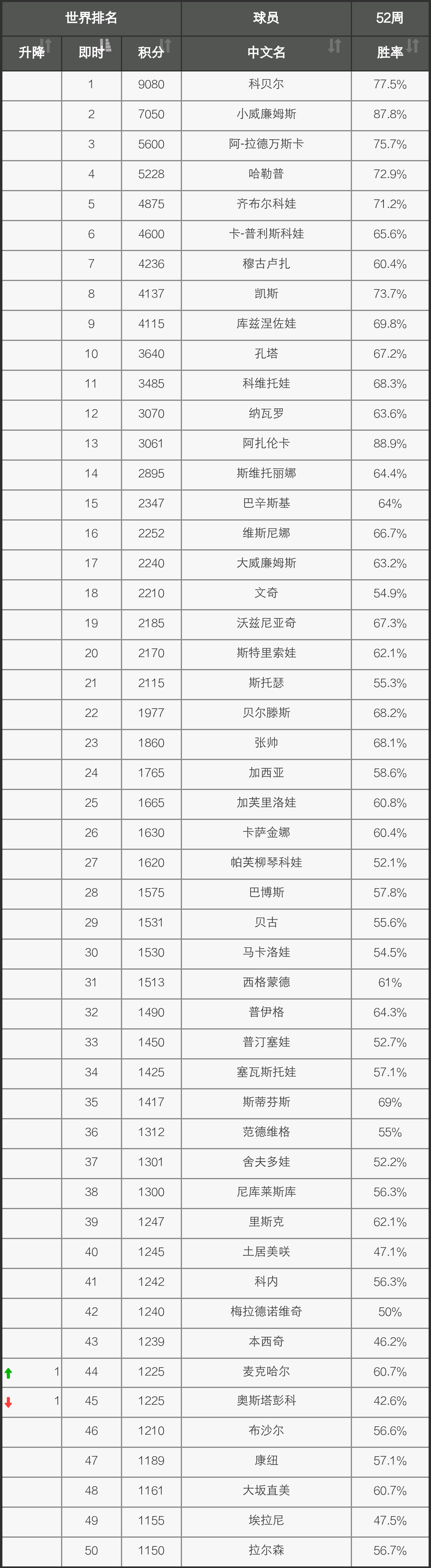 丘の网球 | ATP即时排名 | WTA即时排名 | 签表挑战转载请注明出处和作者
