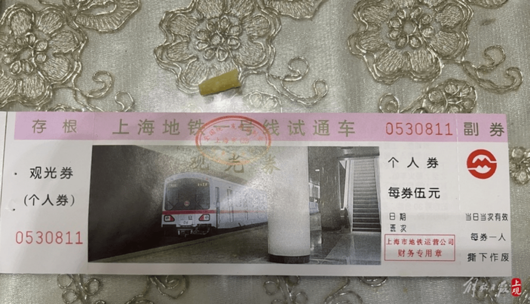 上海地铁一号线试通车的观光券。 图片来源:解放日报