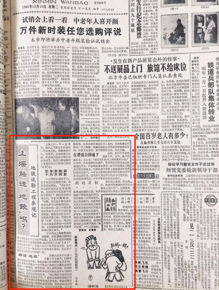 1983年,《新民晚报》在头版以此为题刊发文章,彼时,记者参观了上海地铁试验工程,对庞大而神秘的“地道”啧啧称奇,而地铁的概念在当时仍显得天方夜谭。