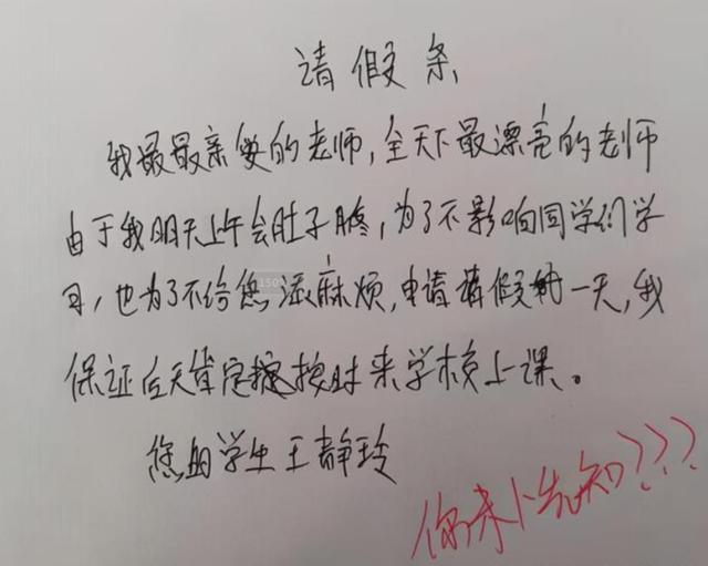 一位小学生和老师请假,说自己明天会肚子疼,这可真的是一本正经地搞事情啊,老师看完之后也是哭笑不得:你未卜先知?