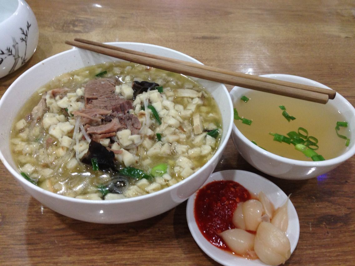 面条整齐划一,粗细均匀,吃起来酸辣劲道,在吃上一口臊子,那叫一个香。本地人吃碗面都会喝这酸辣汤或者要碗甜面汤,完了嘴一擦,撩的很!大刀臊子面:10元/碗
