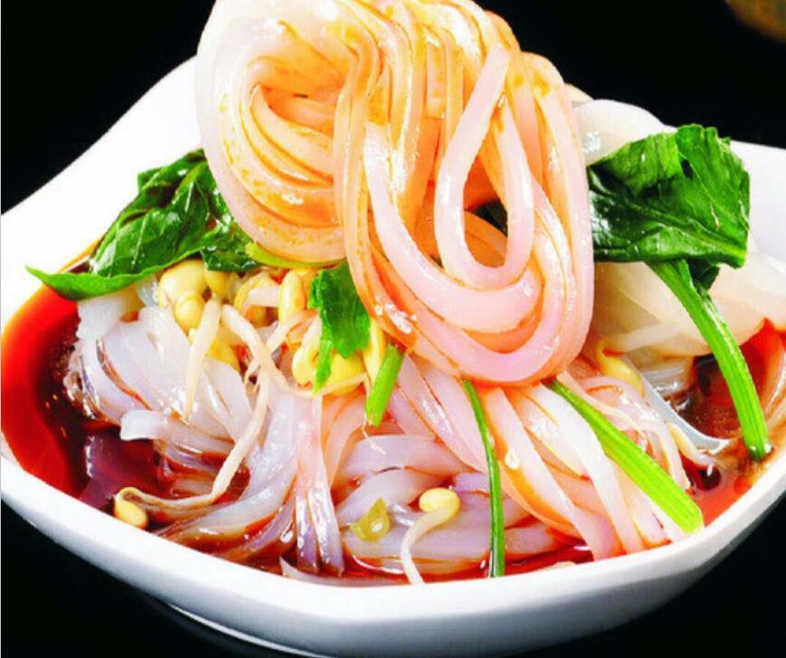 带汤的凉皮,参考价每份8元,分为宽细两种。