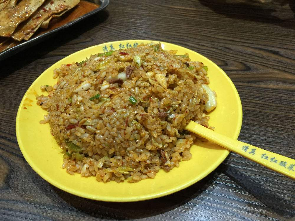 酸菜炒米是一道以米饭、牛肉、胡萝卜等为原料,炒制而成的香、酸口味的西安家常菜,酸酸辣辣,很开胃。我一般倾向于让店家多放料,这样吃起来很爽。