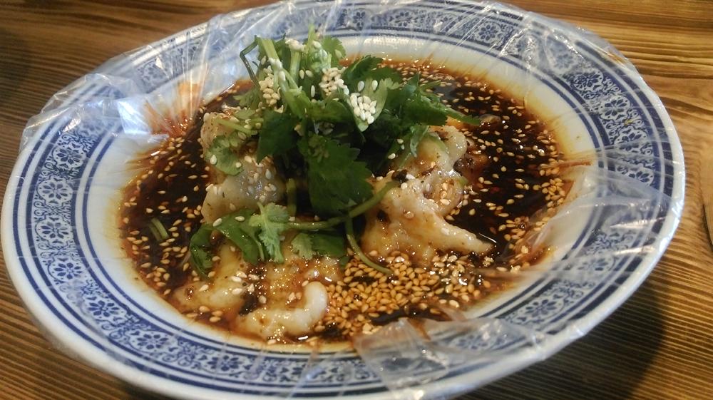卤汁凉粉可算是先黑暗料理界的明星了,先把馍掰好,加上一黑一白(变蛋和煮蛋),再盖上晶莹剔透的凉粉,浇上卤汁、芝麻酱和辣子油,也可以选择加上腊牛肉,一碗特色的卤汁凉粉就做好了。这个吃法还是非常讲究的,不要端上来就插上筷子搅动,那样会被老板鄙视的,哈哈。要想吃羊肉泡馍一样,顺着碗边吃,这样才最地道!
