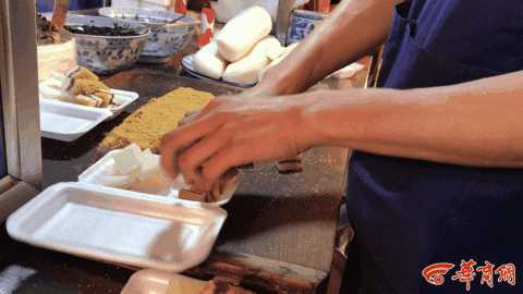 回民街到处都有卖的,有的5块一个,有的3块一个,都一样的。这个一般就是将糯米粉放入蒸格,蒸好后取出,抹上喜欢的口味,我一般都选经典的玫瑰味哦。这个还是得拿好,有的果酱汁多直接顺着签子流下来,所以,备好纸哦!