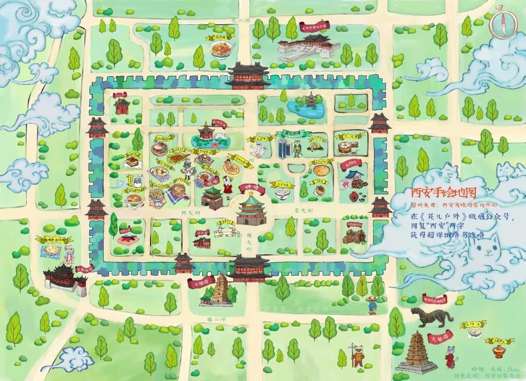 公众号【花儿户外】回复“F”,即可获取花儿原创最靠谱的《西安美食手绘地图》的超高清大图。