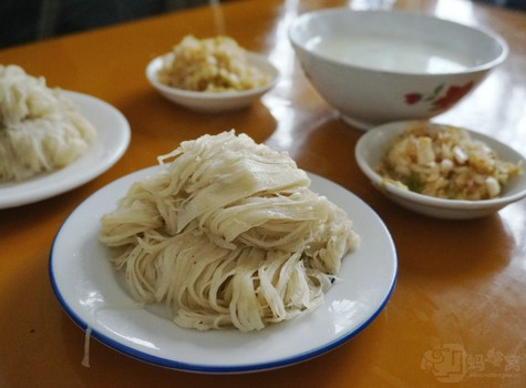 曾将专门去了秦镇去尝正宗的米皮,相对于擀面皮,这个更加软糯一点。这个基本是辣子油,而擀面皮也有辣子皮和籽。反正你记着,口感不同,都很好吃就好了!秦镇米皮:6元/碗。