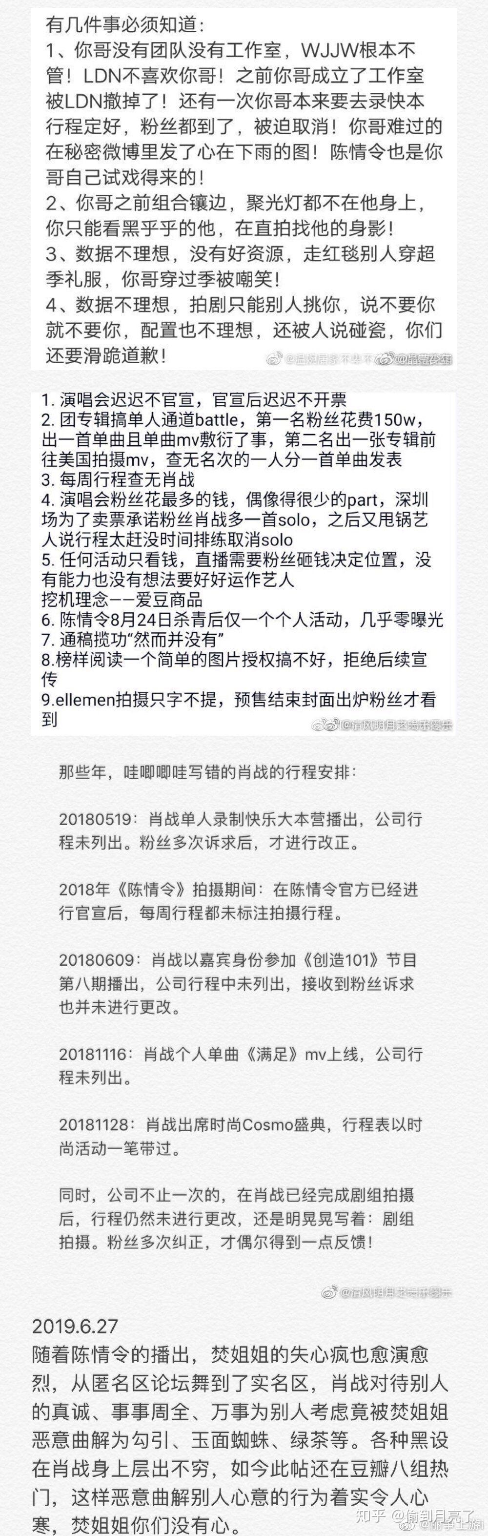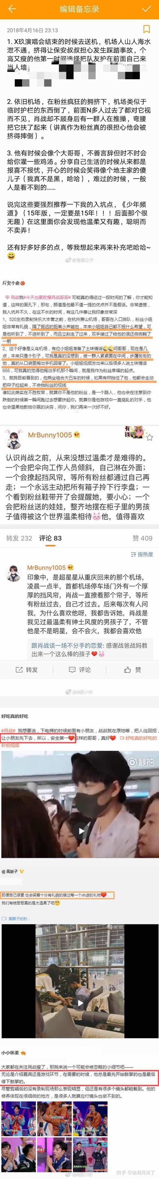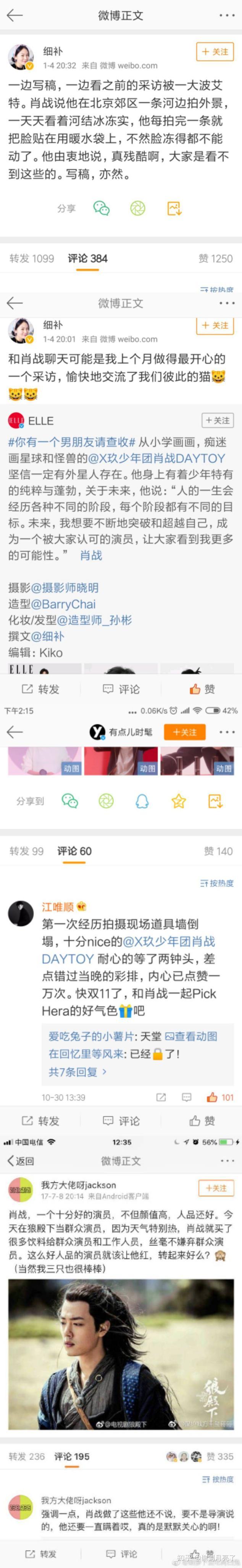 哪怕是被公司漠视,没有经纪人,被黑粉中伤,被有心人造谣,眼睛发炎,高烧吊威亚,练舞到指甲脱落,哥哥在机场还是会给粉丝露出那么灿烂的微笑。字数不够看截图吧,总结下来就一句话,请哇唧唧哇公平对待肖战。